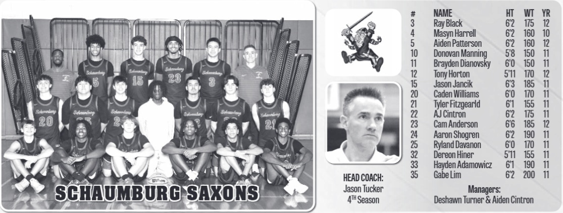 SCOUTING THE SAXONS: Schaumburg returns for their third year at the Hinsdale Central Holiday Classic. The Saxons finished with a 2-2 record in both years they have participated. Six-foot, six-inch Cam Anderson is a three-year varsity player who an an Honorable Mention All-Area selection last year as a junior. 5-11 Tony Horton is a senior point guard who averaged eight points per game last year. |